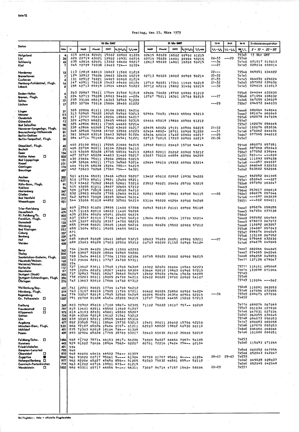 Europäischer Wetterbericht. Beilage 1, Bodenwettermeldungen. 1976-1994