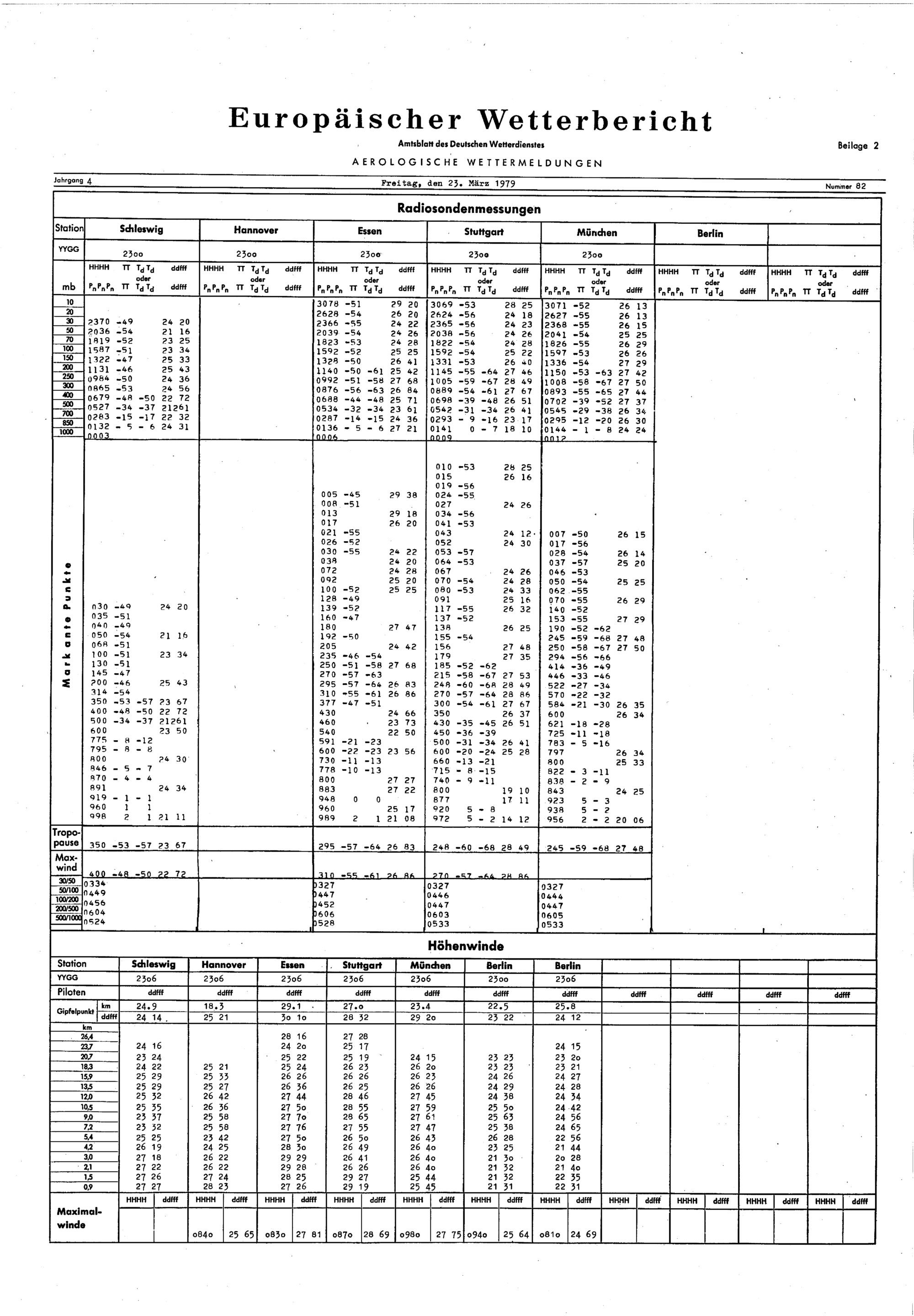 Europäischer Wetterbericht. Beilage 1, Bodenwettermeldungen. 1976-1994