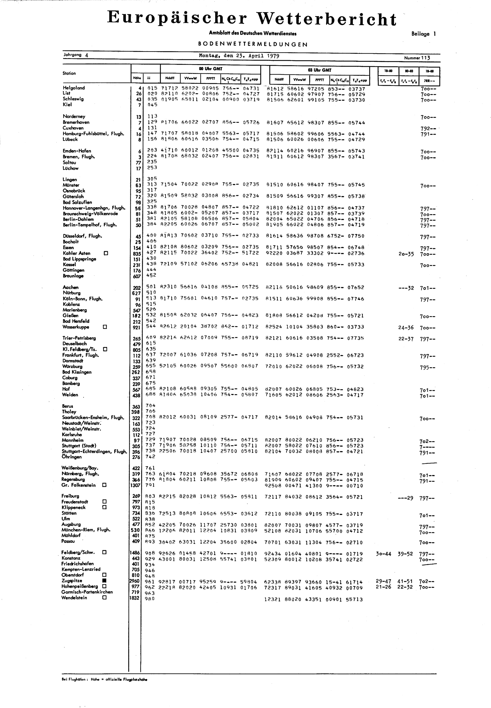 Europäischer Wetterbericht. Beilage 1, Bodenwettermeldungen. 1976-1994