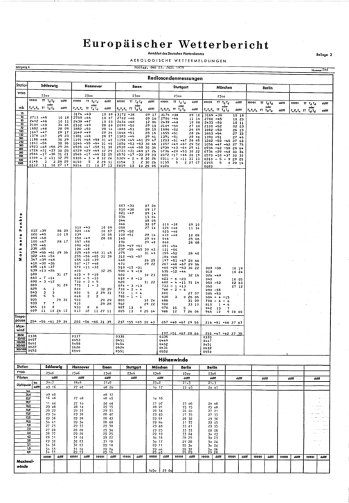 Europäischer Wetterbericht. Beilage 1, Bodenwettermeldungen. 1976-1994
