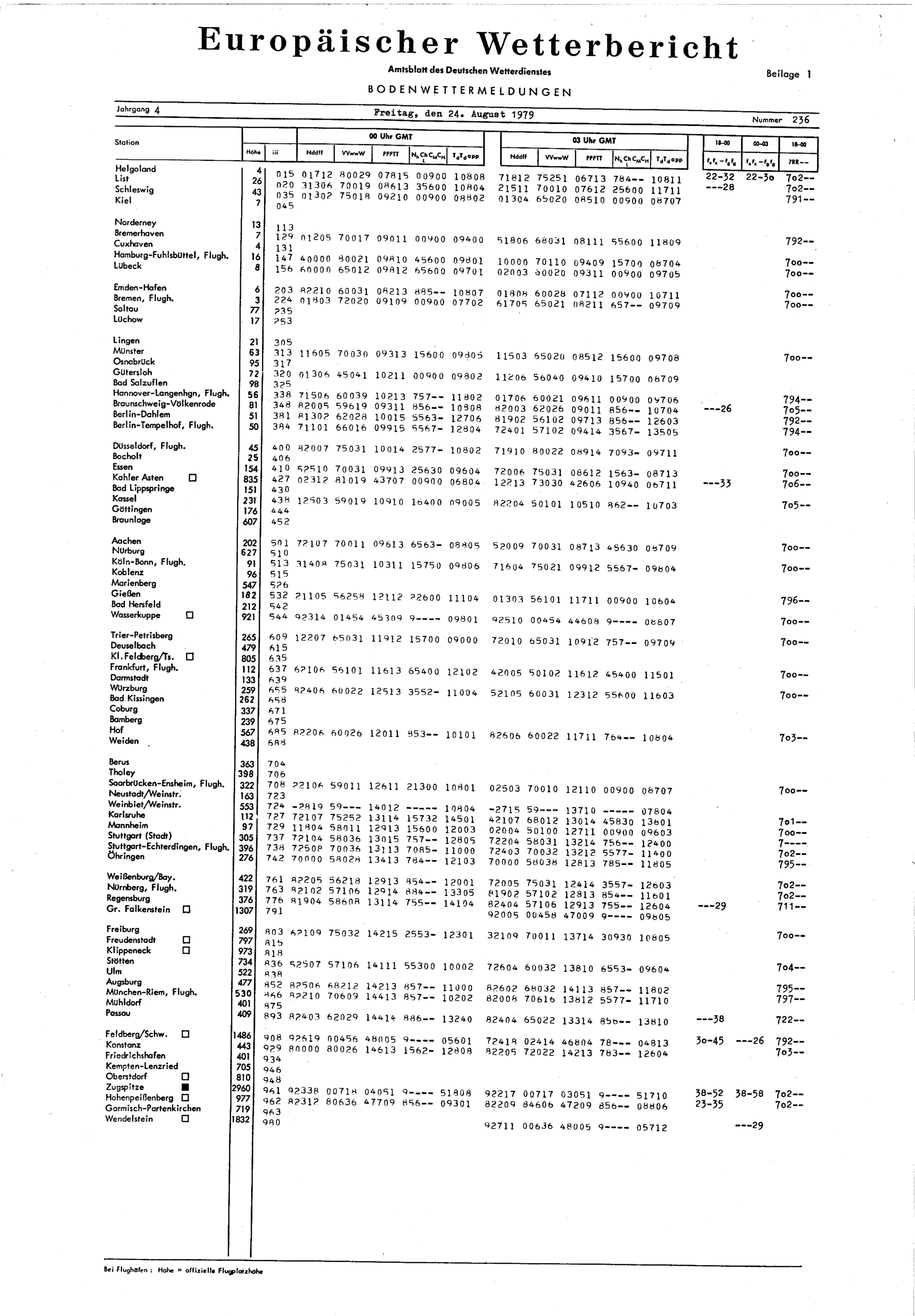 Europäischer Wetterbericht. Beilage 1, Bodenwettermeldungen. 1976-1994