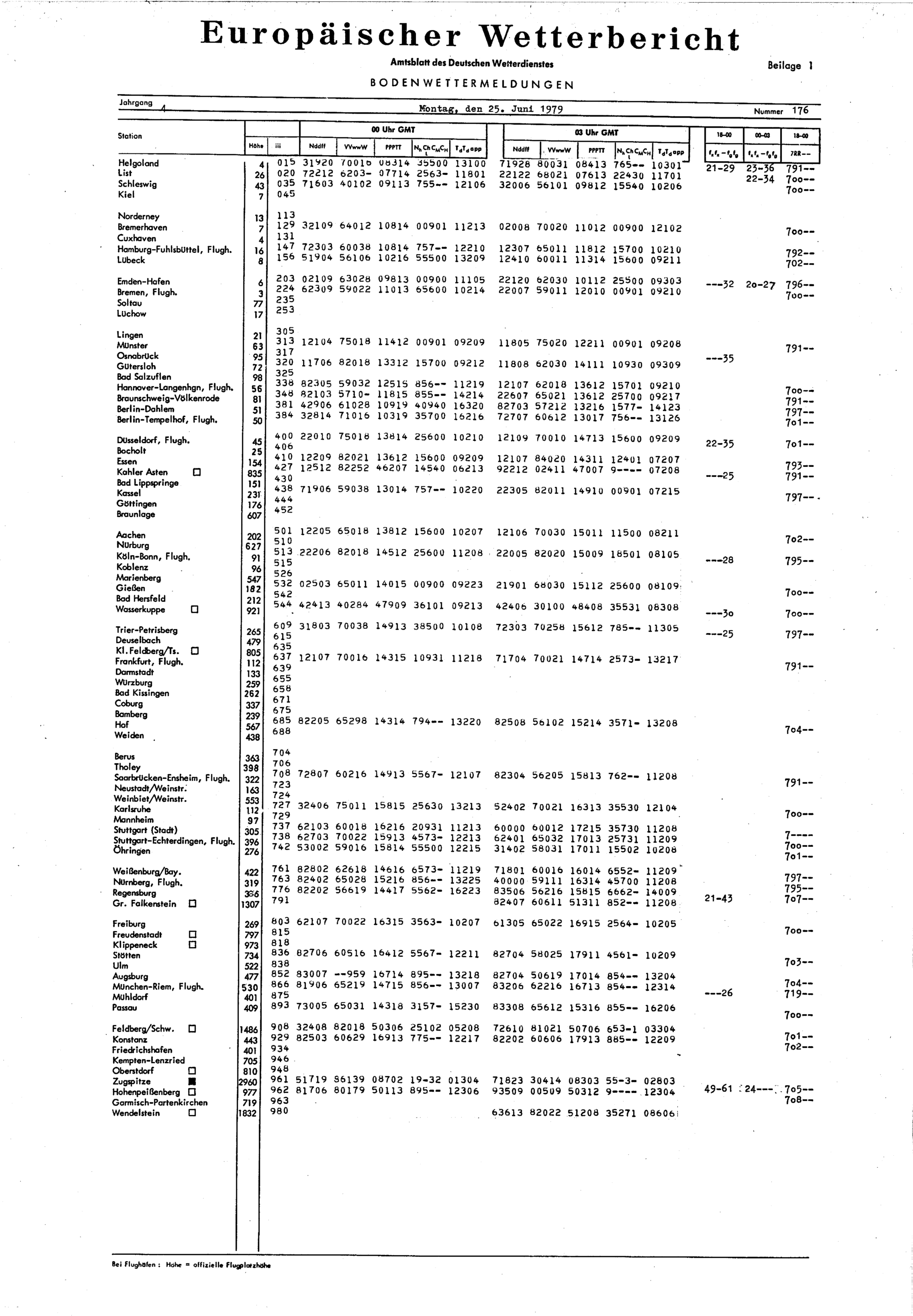 Europäischer Wetterbericht. Beilage 1, Bodenwettermeldungen. 1976-1994