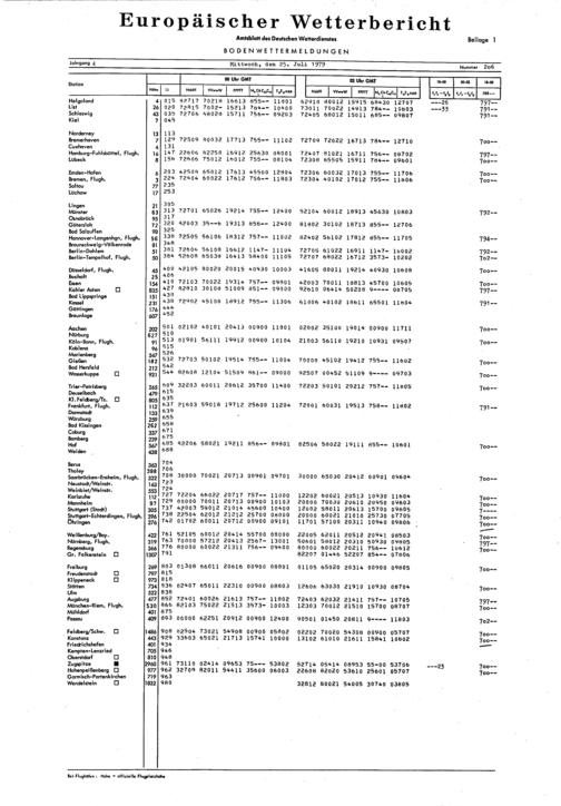 Europäischer Wetterbericht. Beilage 1, Bodenwettermeldungen. 1976-1994