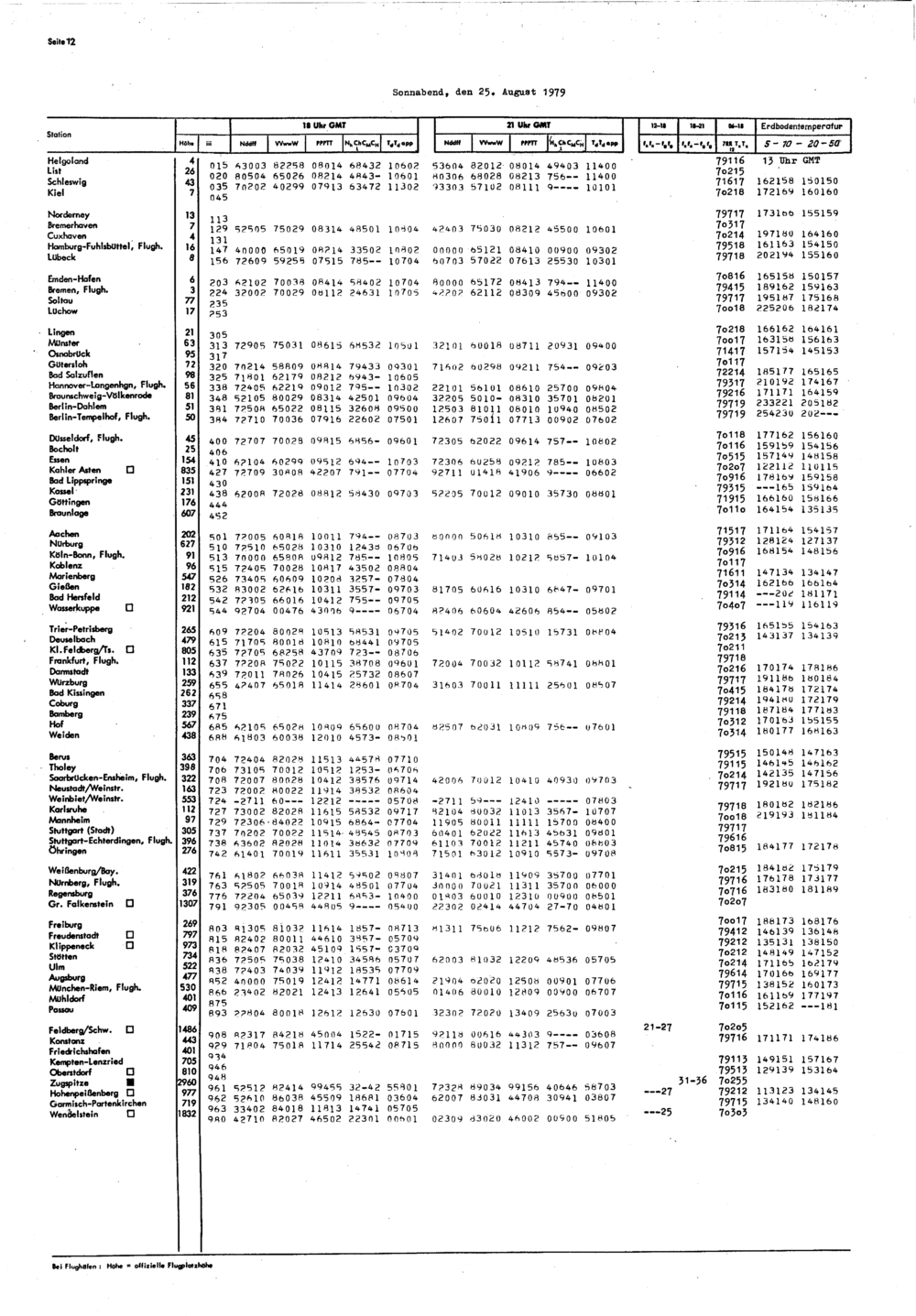 Europäischer Wetterbericht. Beilage 1, Bodenwettermeldungen. 1976-1994