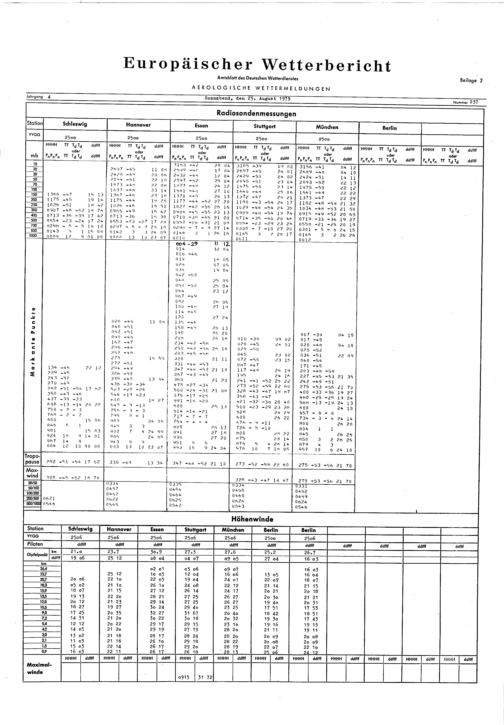 Europäischer Wetterbericht. Beilage 1, Bodenwettermeldungen. 1976-1994