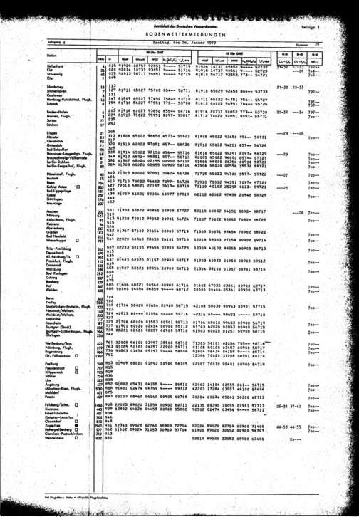 Europäischer Wetterbericht. Beilage 1, Bodenwettermeldungen. 1976-1994