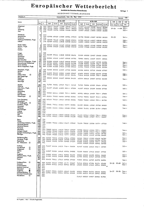 Europäischer Wetterbericht. Beilage 1, Bodenwettermeldungen. 1976-1994