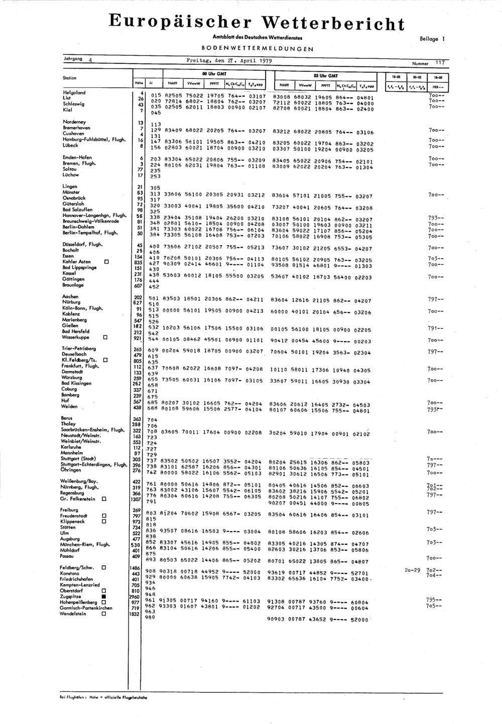 Europäischer Wetterbericht. Beilage 1, Bodenwettermeldungen. 1976-1994