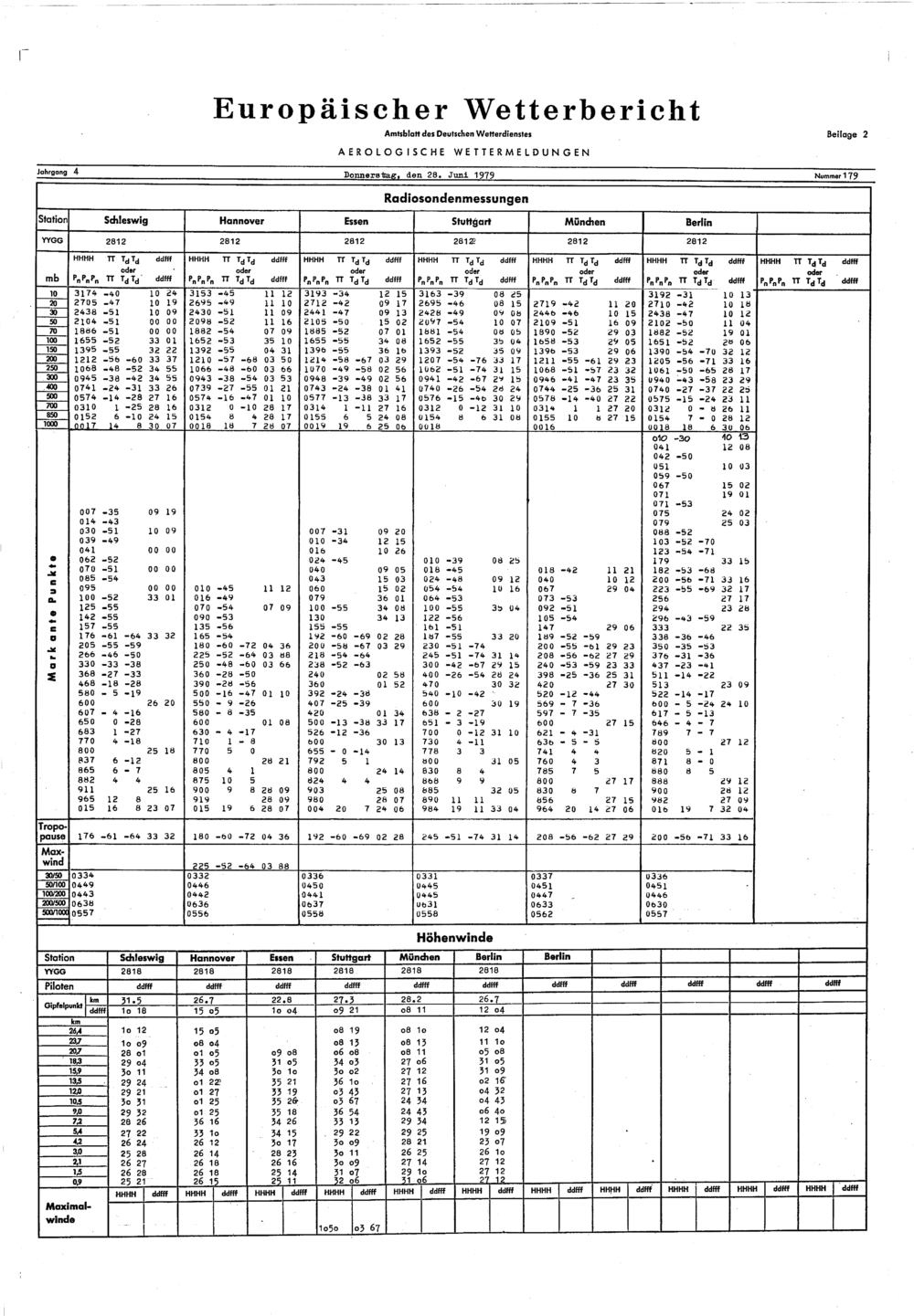 Europäischer Wetterbericht. Beilage 1, Bodenwettermeldungen. 1976-1994