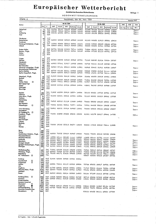 Europäischer Wetterbericht. Beilage 1, Bodenwettermeldungen. 1976-1994