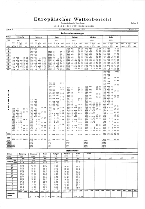 Europäischer Wetterbericht. Beilage 1, Bodenwettermeldungen. 1976-1994