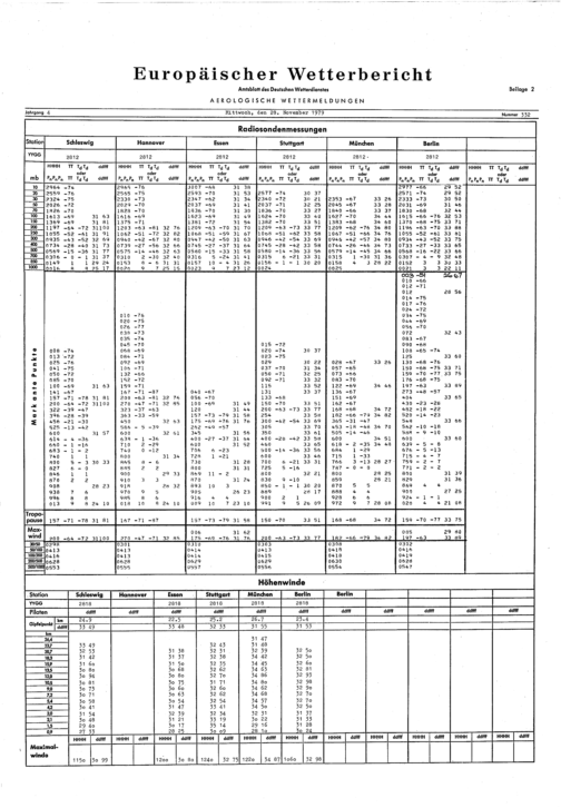 Europäischer Wetterbericht. Beilage 1, Bodenwettermeldungen. 1976-1994