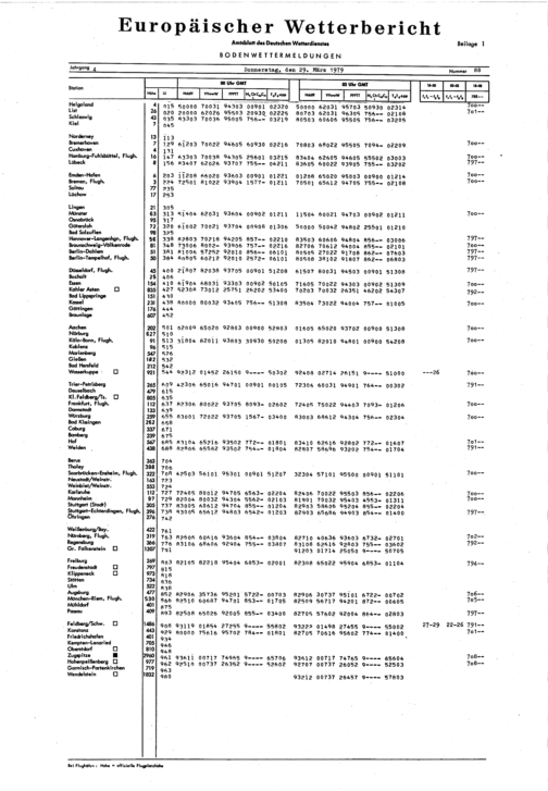 Europäischer Wetterbericht. Beilage 1, Bodenwettermeldungen. 1976-1994