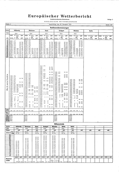 Europäischer Wetterbericht. Beilage 1, Bodenwettermeldungen. 1976-1994
