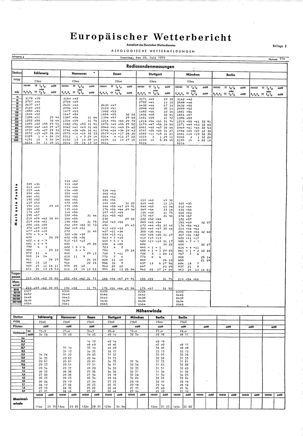 Europäischer Wetterbericht. Beilage 1, Bodenwettermeldungen. 1976-1994