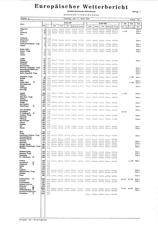 Europäischer Wetterbericht. Beilage 1, Bodenwettermeldungen. 1976-1994