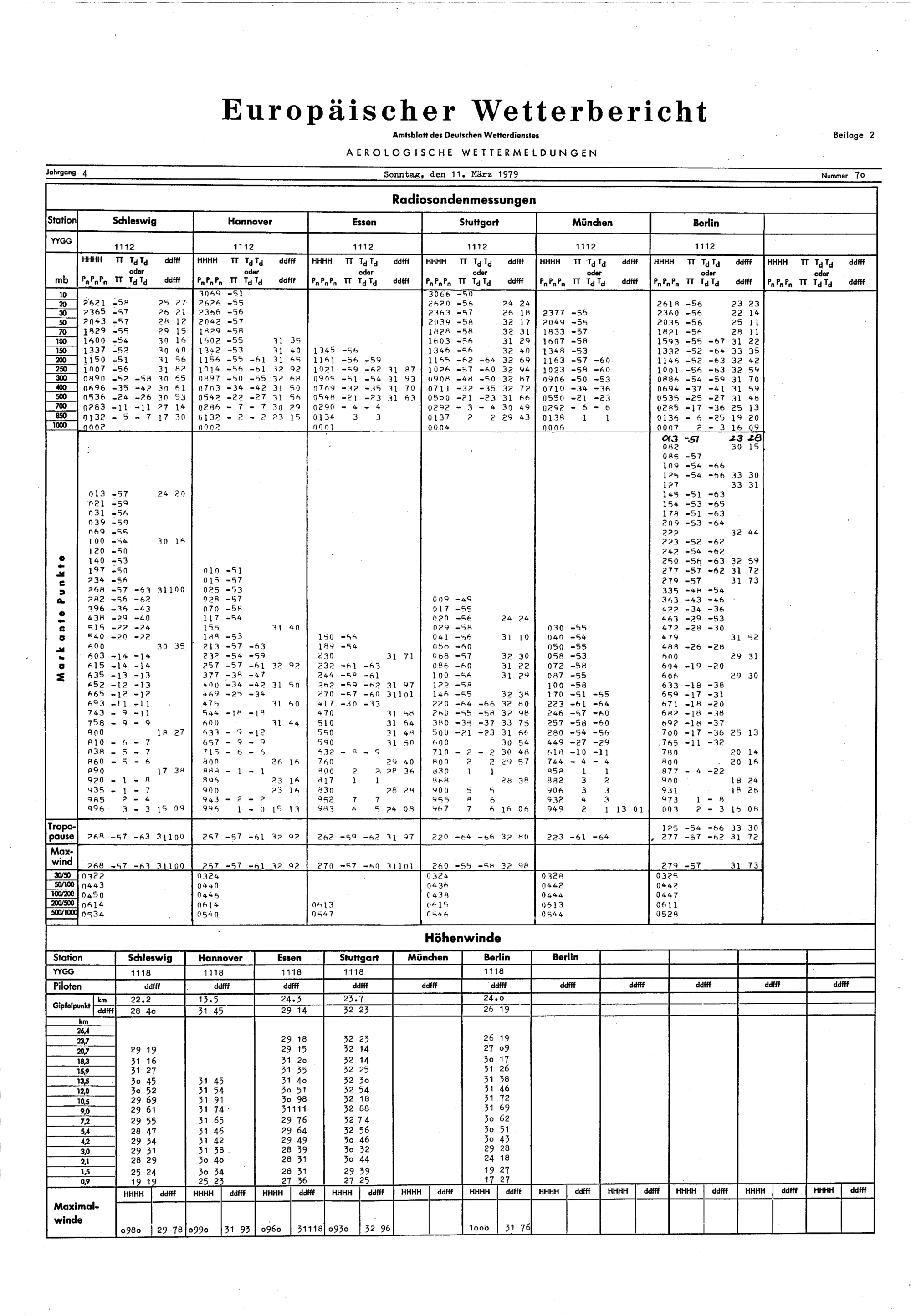 Europäischer Wetterbericht. Beilage 1, Bodenwettermeldungen. 1976-1994