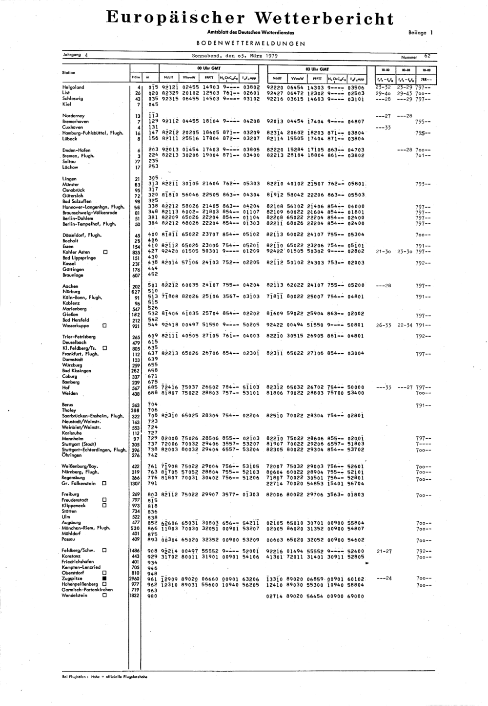 Europäischer Wetterbericht. Beilage 1, Bodenwettermeldungen. 1976-1994