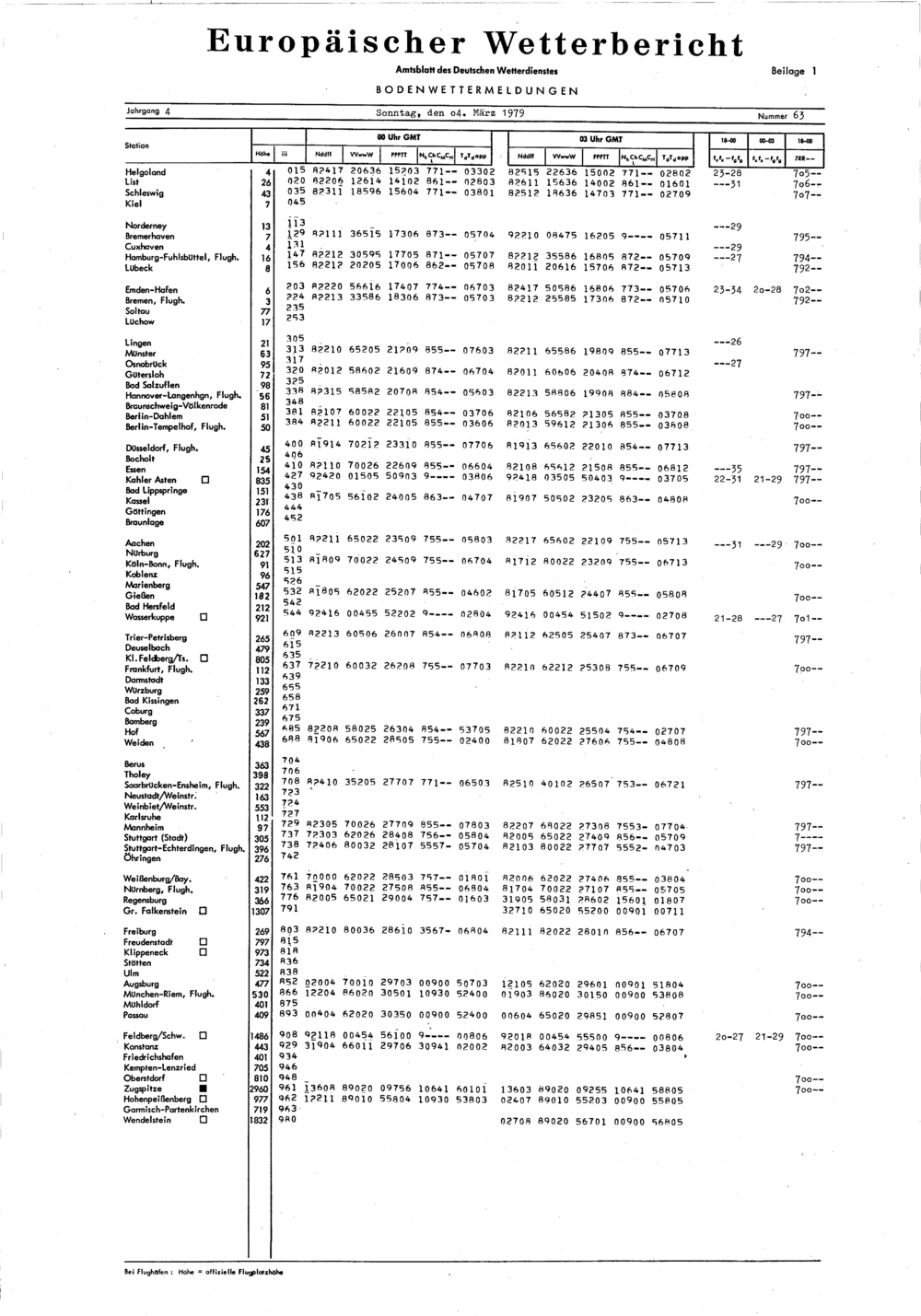 Europäischer Wetterbericht. Beilage 1, Bodenwettermeldungen. 1976-1994