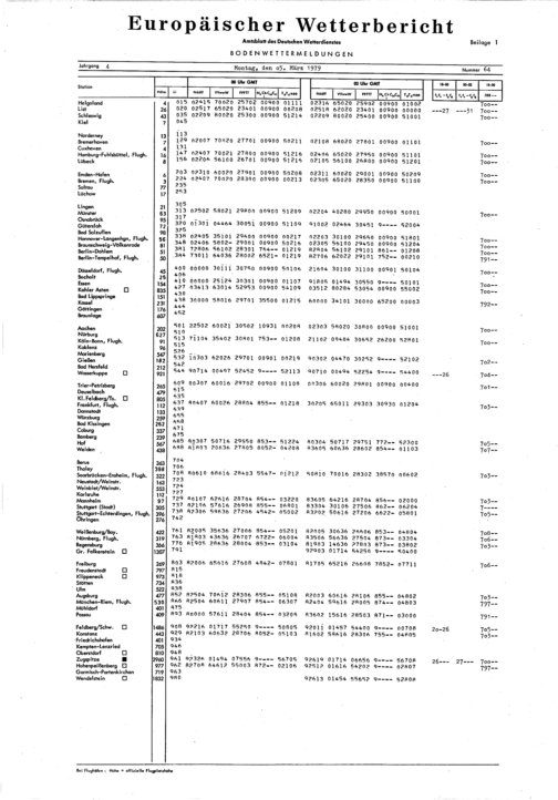Europäischer Wetterbericht. Beilage 1, Bodenwettermeldungen. 1976-1994