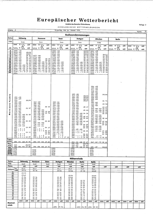 Europäischer Wetterbericht. Beilage 1, Bodenwettermeldungen. 1976-1994