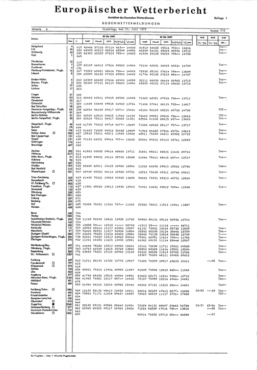Europäischer Wetterbericht. Beilage 1, Bodenwettermeldungen. 1976-1994