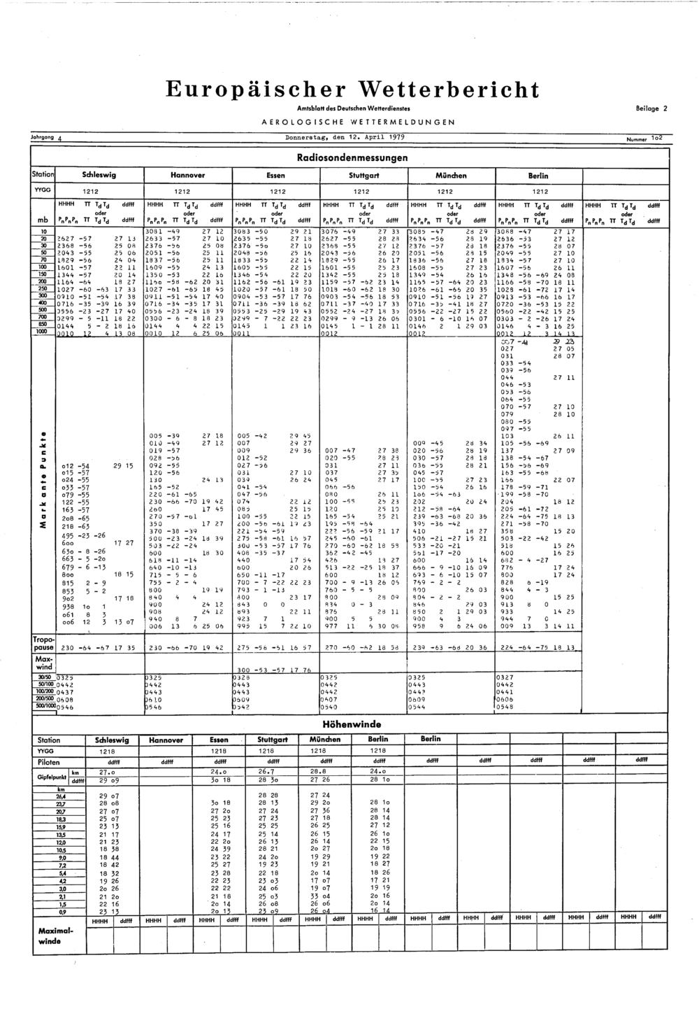 Europäischer Wetterbericht. Beilage 1, Bodenwettermeldungen. 1976-1994