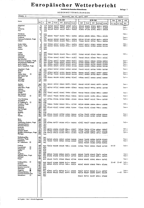 Europäischer Wetterbericht. Beilage 1, Bodenwettermeldungen. 1976-1994