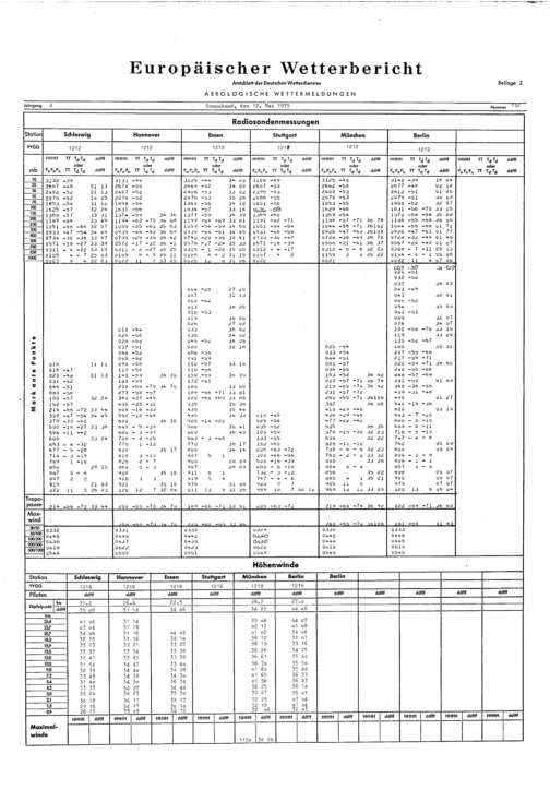 Europäischer Wetterbericht. Beilage 1, Bodenwettermeldungen. 1976-1994