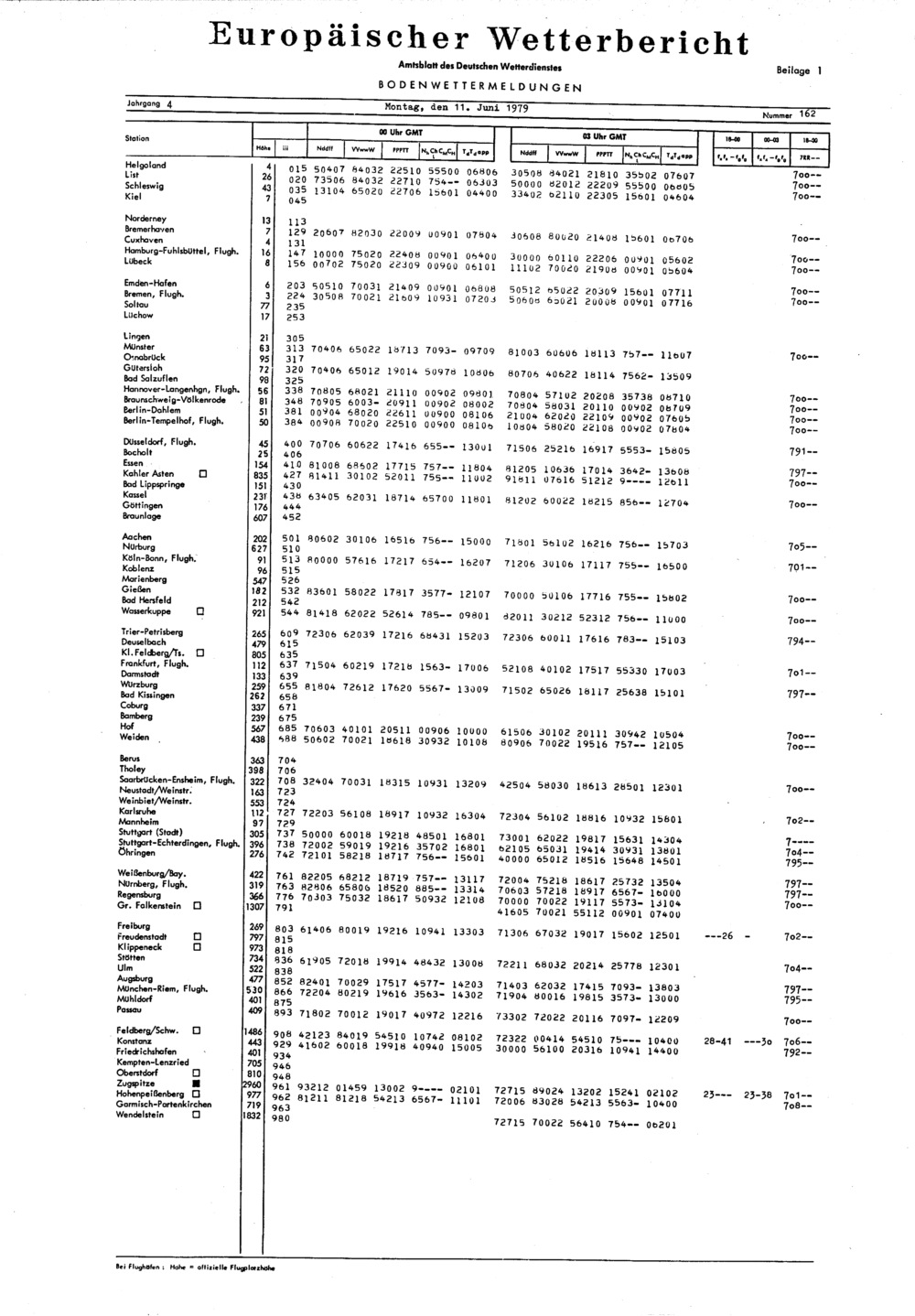 Europäischer Wetterbericht. Beilage 1, Bodenwettermeldungen. 1976-1994