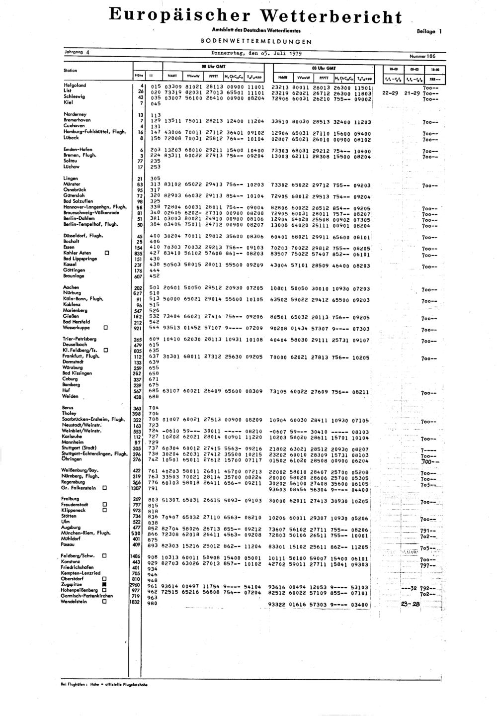 Europäischer Wetterbericht. Beilage 1, Bodenwettermeldungen. 1976-1994