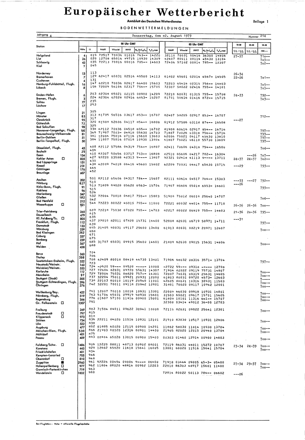 Europäischer Wetterbericht. Beilage 1, Bodenwettermeldungen. 1976-1994