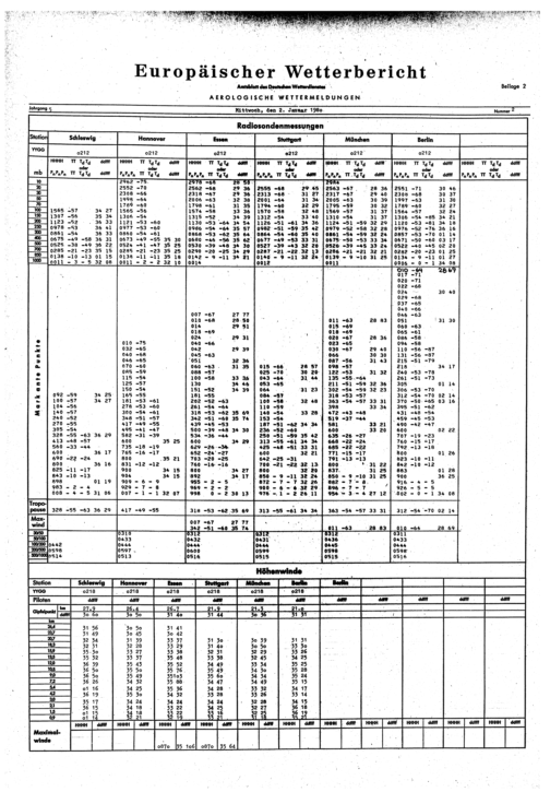 Europäischer Wetterbericht. Beilage 1, Bodenwettermeldungen. 1976-1994