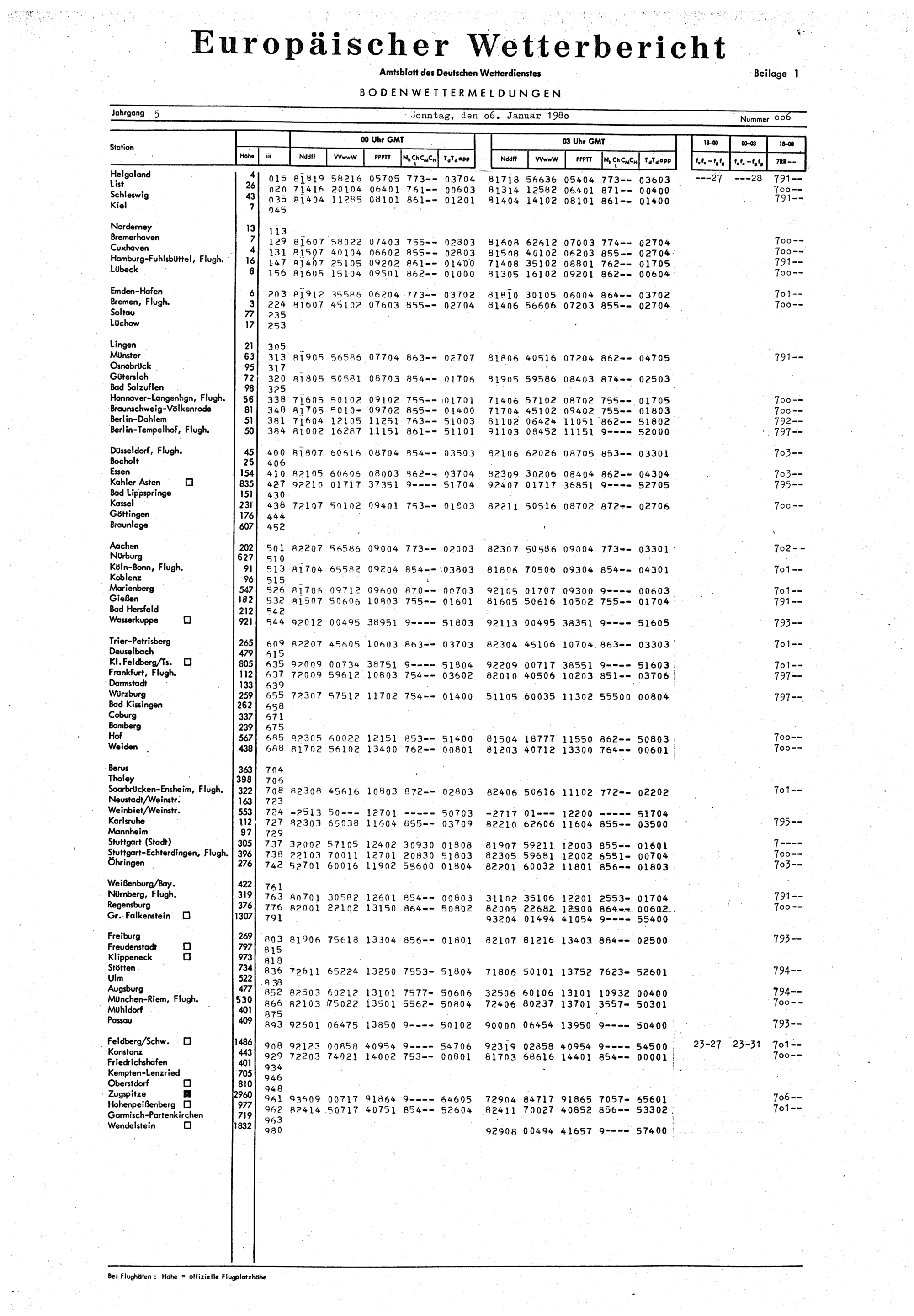 Europäischer Wetterbericht. Beilage 1, Bodenwettermeldungen. 1976-1994
