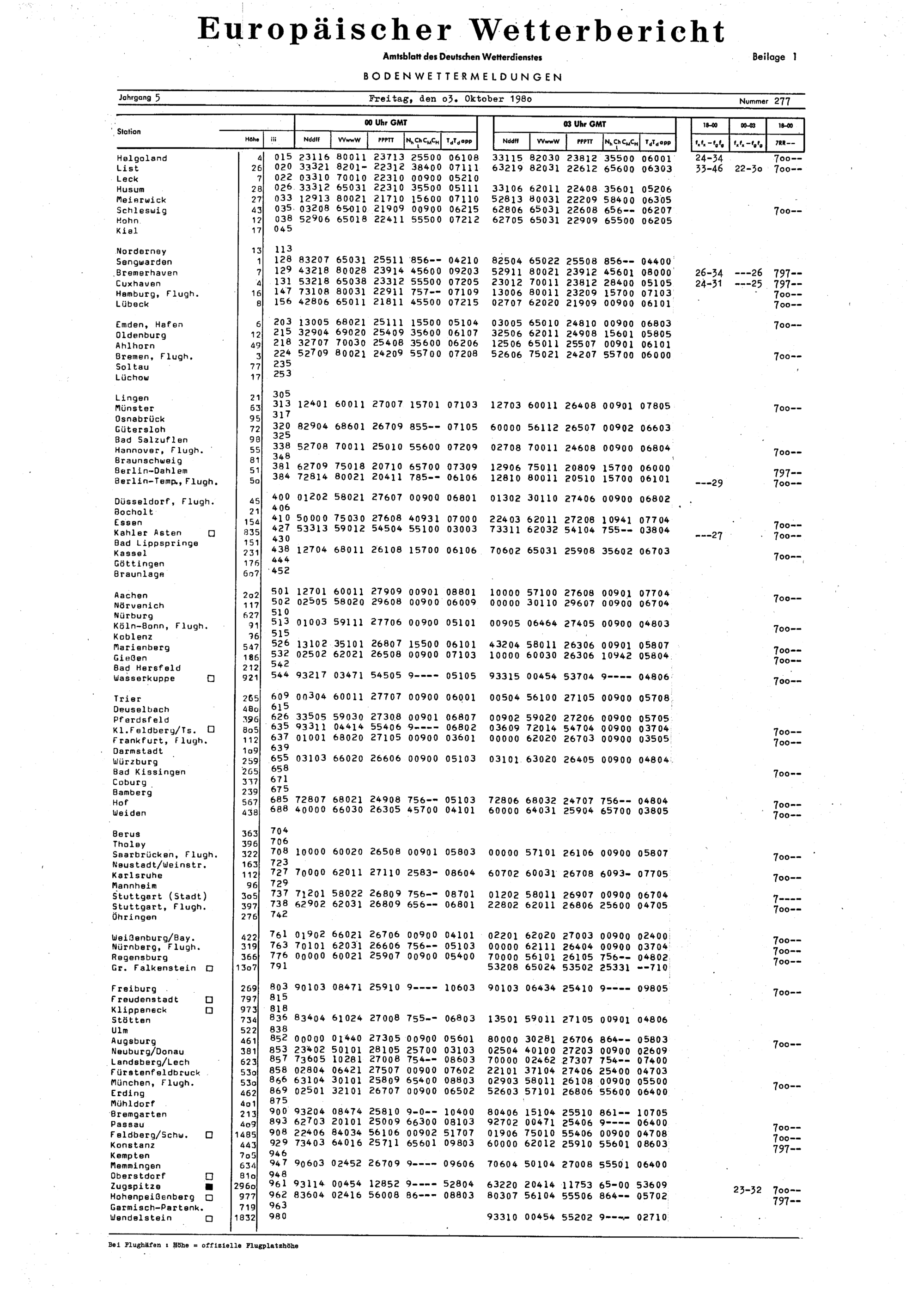 Europäischer Wetterbericht. Beilage 1, Bodenwettermeldungen. 1976-1994