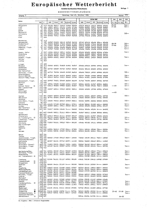 Europäischer Wetterbericht. Beilage 1, Bodenwettermeldungen. 1976-1994