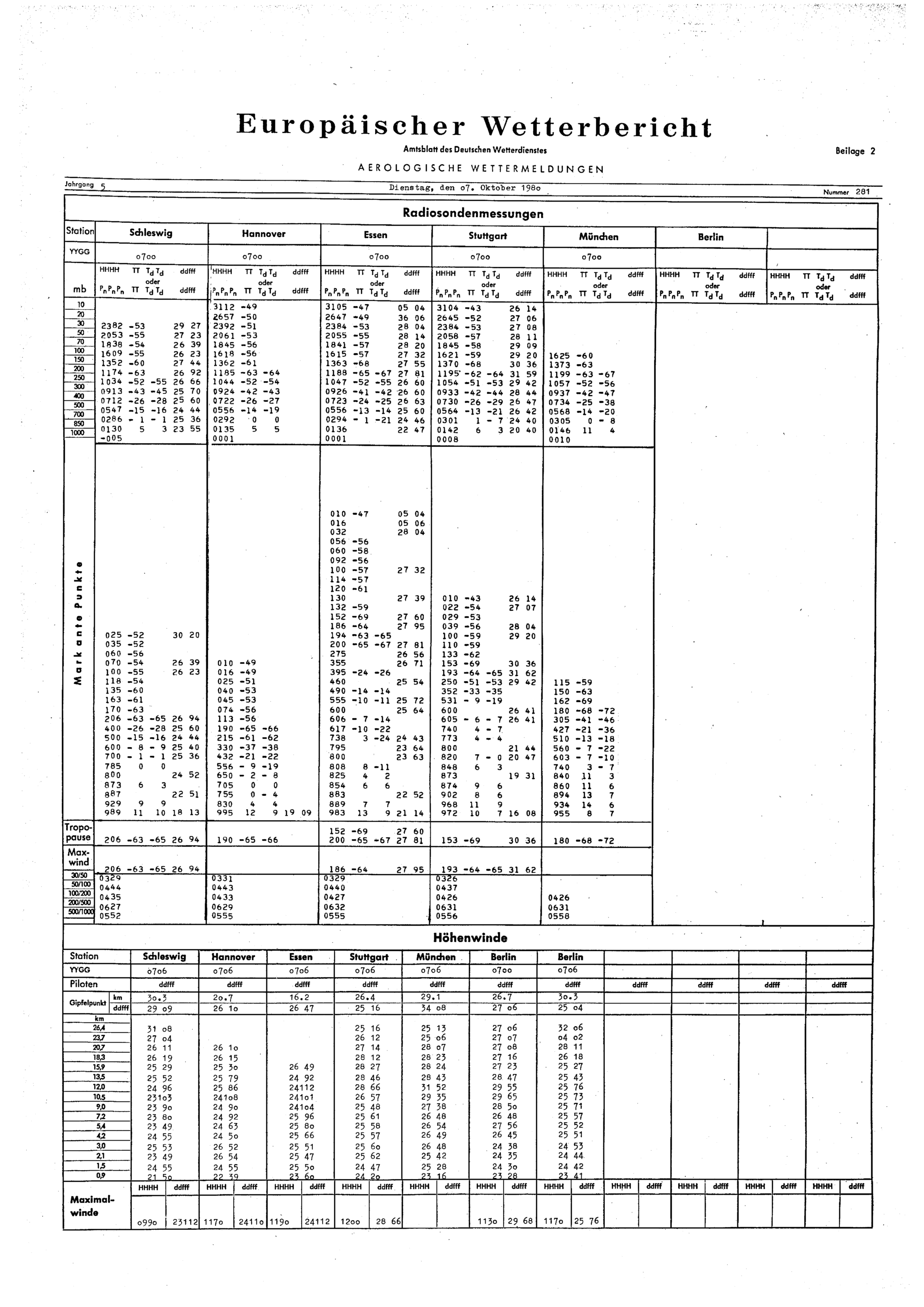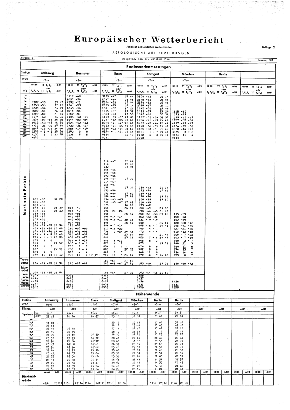 Europäischer Wetterbericht. Beilage 1, Bodenwettermeldungen. 1976-1994