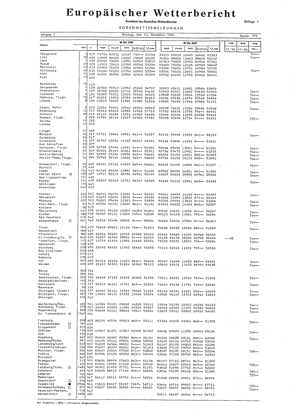 Europäischer Wetterbericht. Beilage 1, Bodenwettermeldungen. 1976-1994