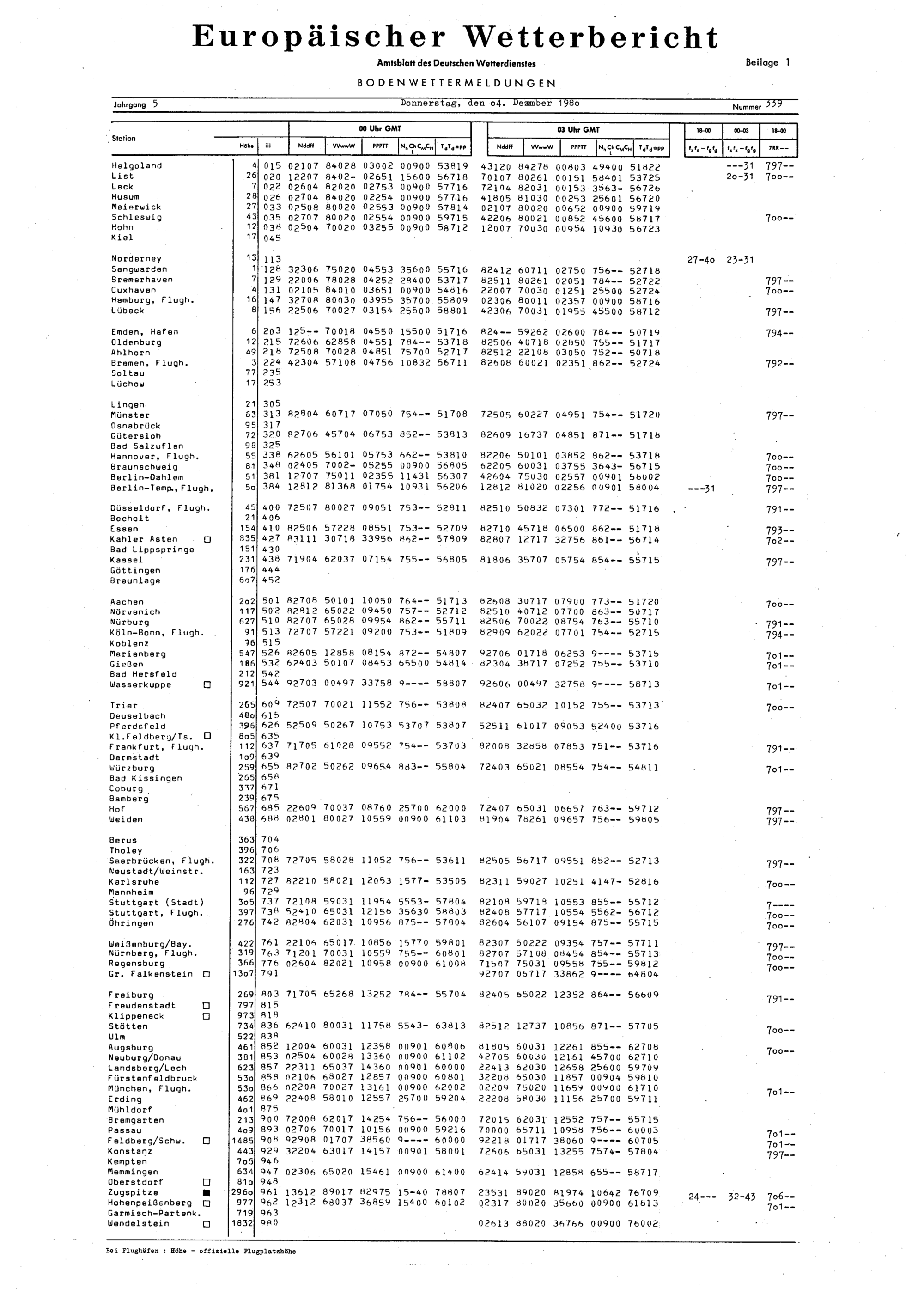 Europäischer Wetterbericht. Beilage 1, Bodenwettermeldungen. 1976-1994