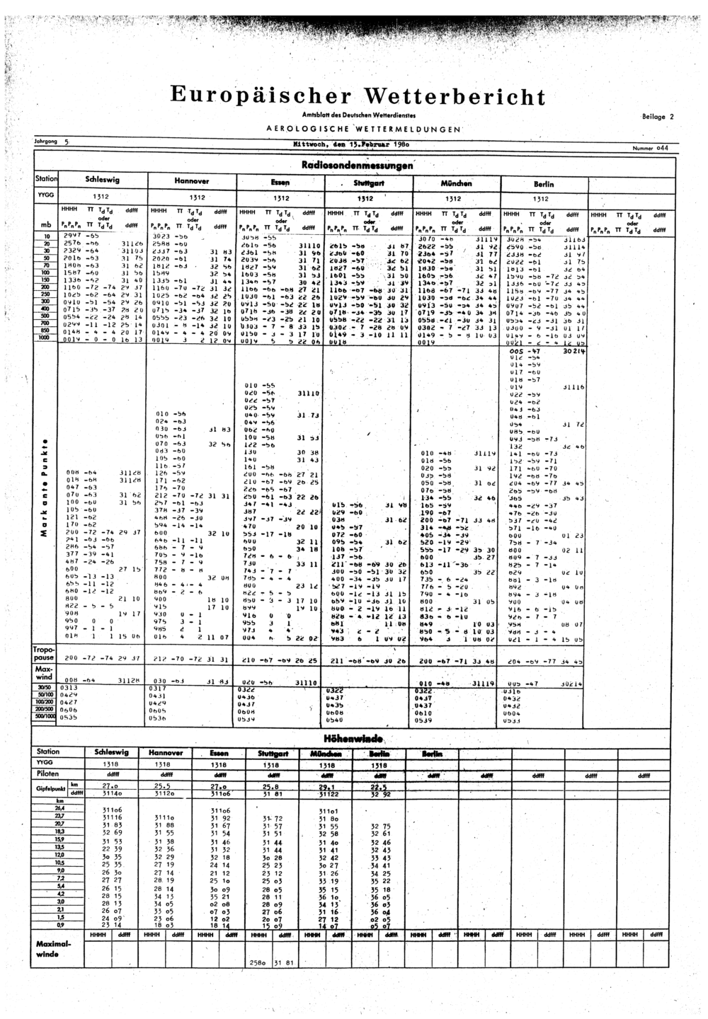 Europäischer Wetterbericht. Beilage 1, Bodenwettermeldungen. 1976-1994