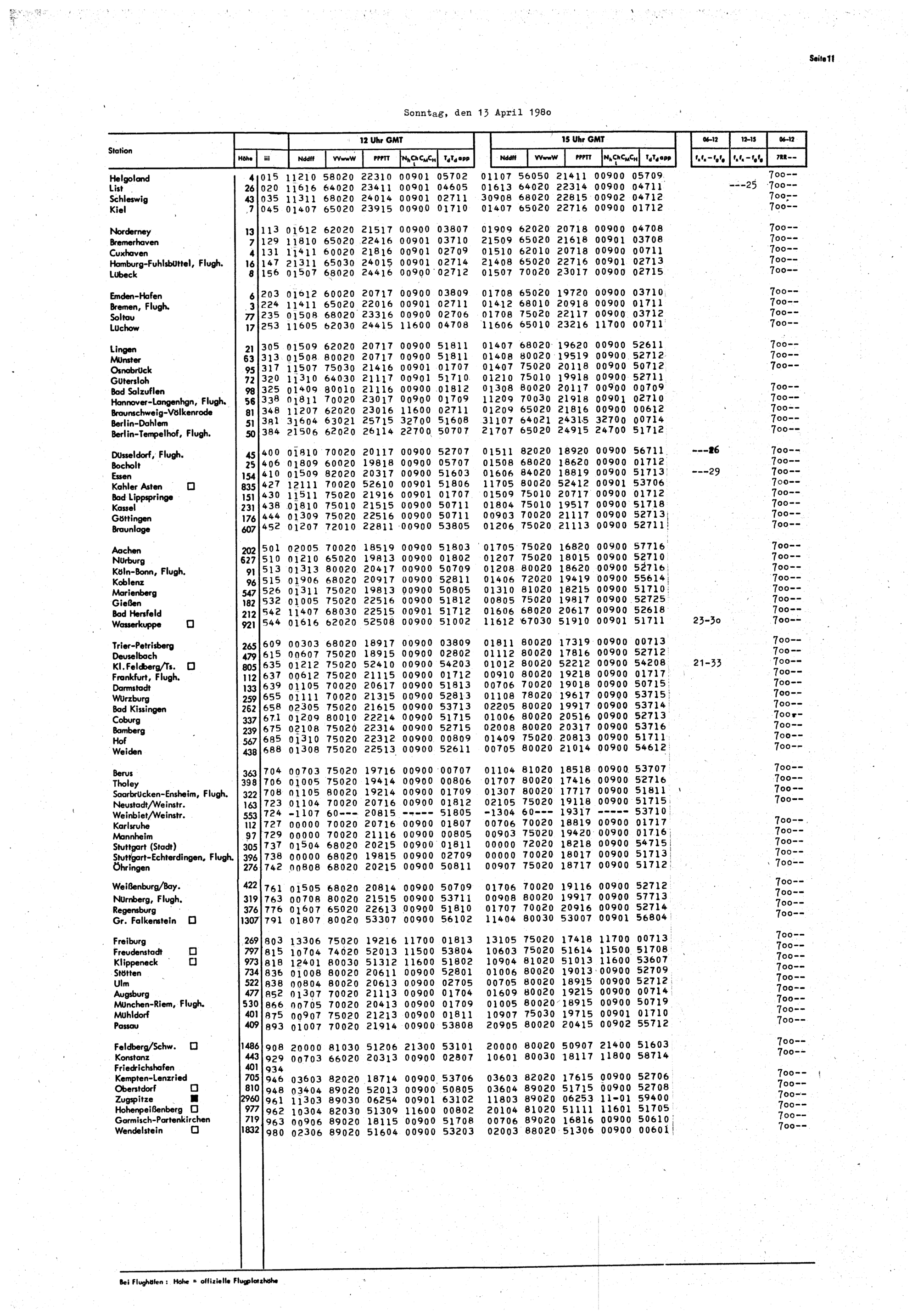 Europäischer Wetterbericht. Beilage 1, Bodenwettermeldungen. 1976-1994