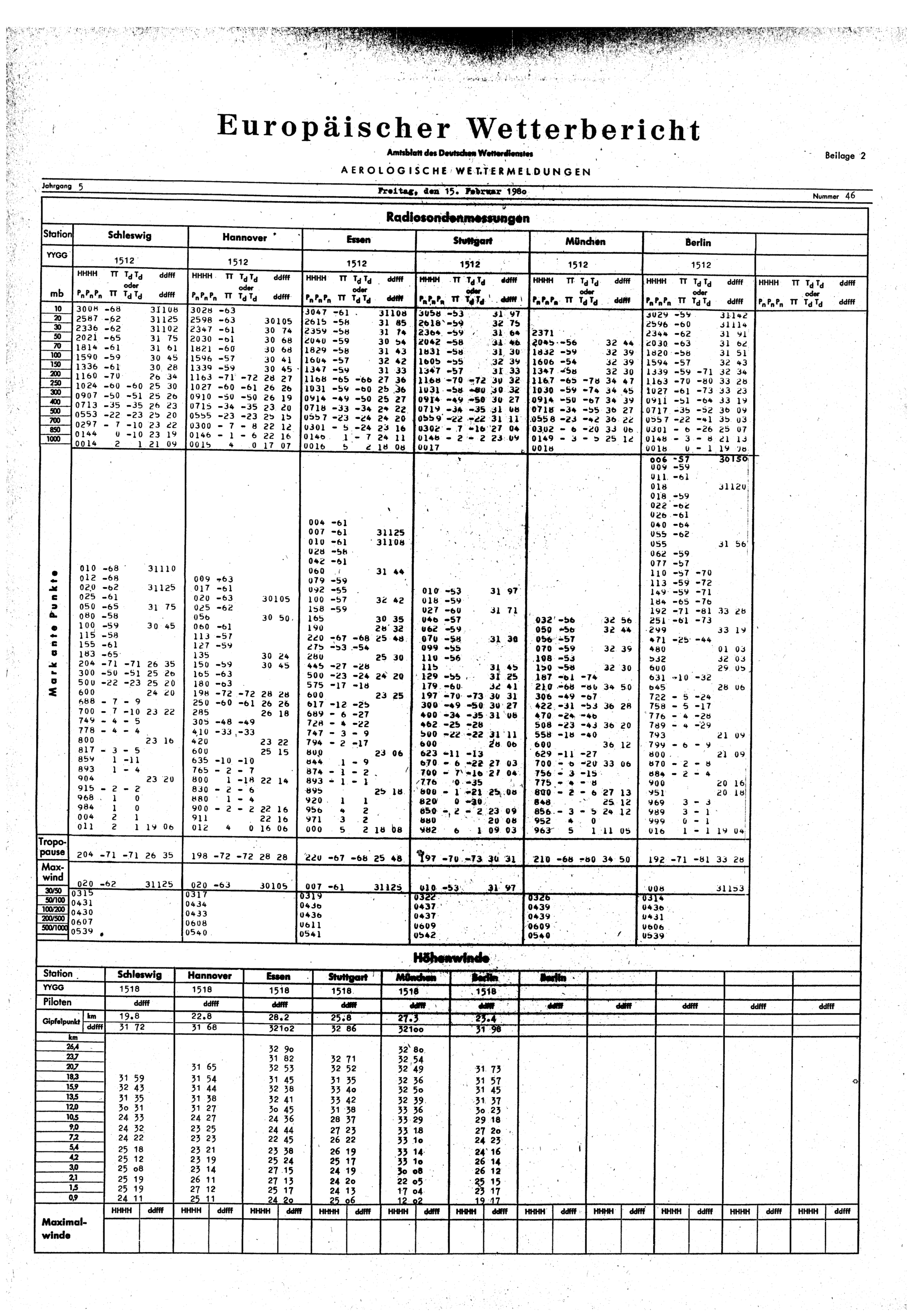 Europäischer Wetterbericht. Beilage 1, Bodenwettermeldungen. 1976-1994