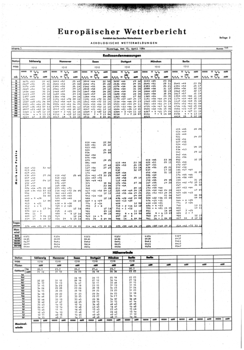 Europäischer Wetterbericht. Beilage 1, Bodenwettermeldungen. 1976-1994