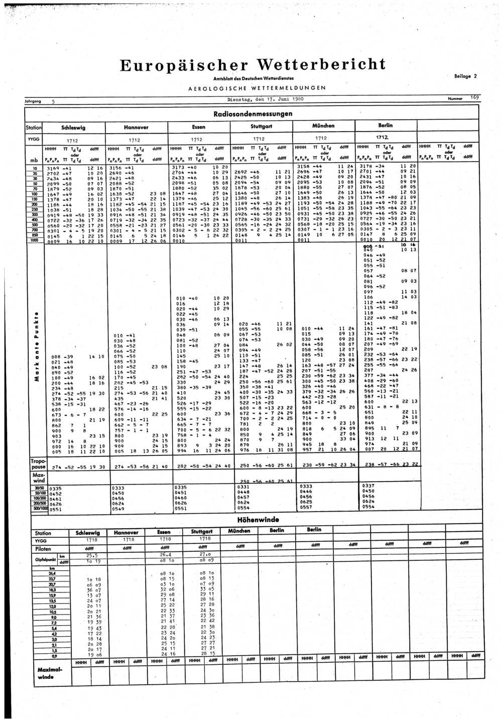 Europäischer Wetterbericht. Beilage 1, Bodenwettermeldungen. 1976-1994