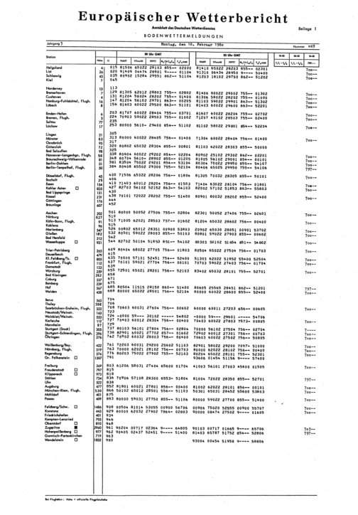 Europäischer Wetterbericht. Beilage 1, Bodenwettermeldungen. 1976-1994