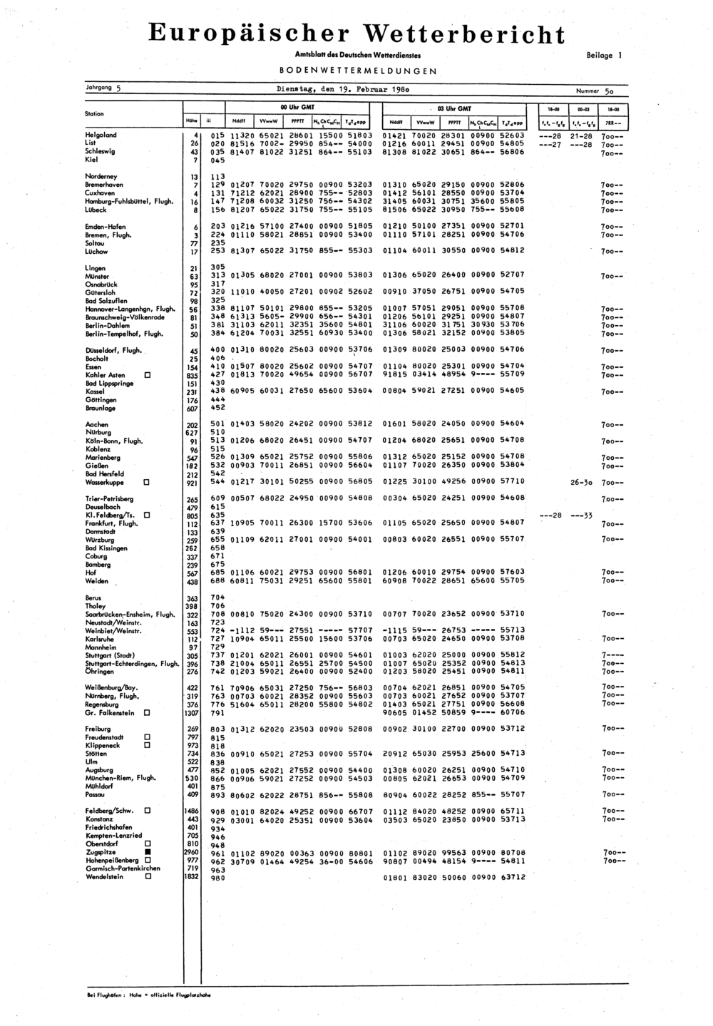 Europäischer Wetterbericht. Beilage 1, Bodenwettermeldungen. 1976-1994