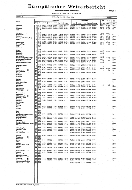 Europäischer Wetterbericht. Beilage 1, Bodenwettermeldungen. 1976-1994