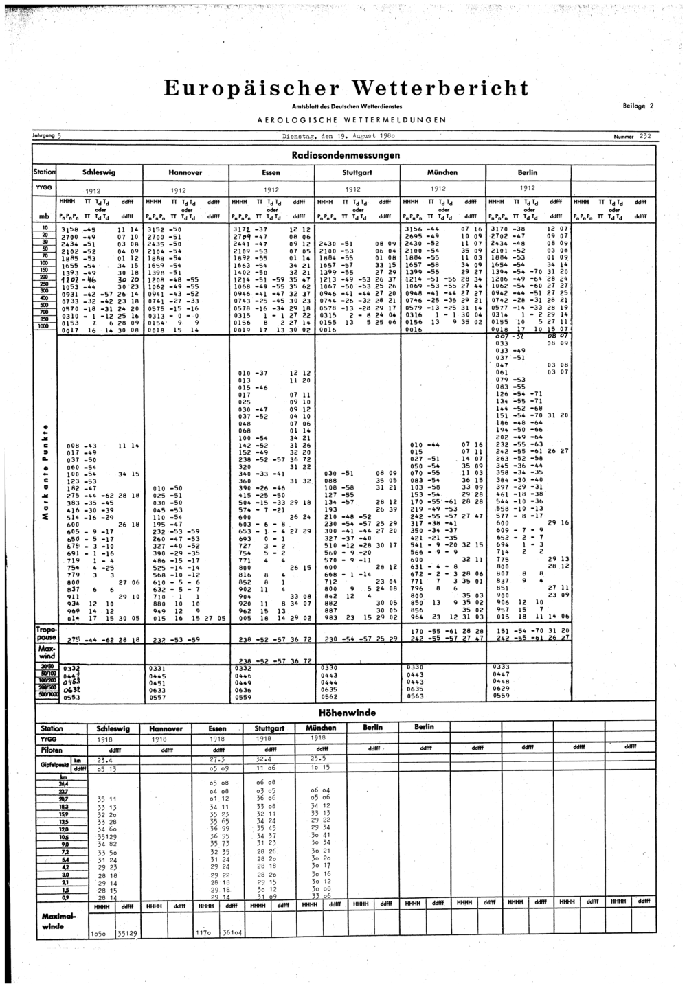 Europäischer Wetterbericht. Beilage 1, Bodenwettermeldungen. 1976-1994