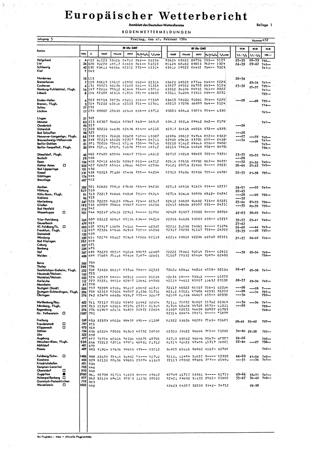 Europäischer Wetterbericht. Beilage 1, Bodenwettermeldungen. 1976-1994