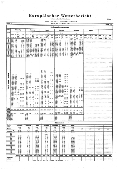 Europäischer Wetterbericht. Beilage 1, Bodenwettermeldungen. 1976-1994